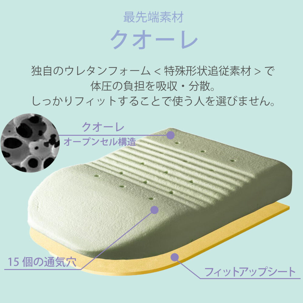 独自のウレタンフォーム「特殊形状追従素材」で体圧の負担を吸収・分散。