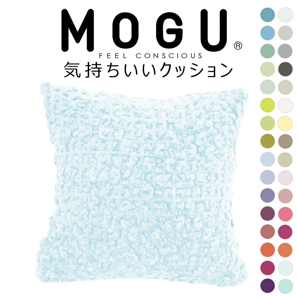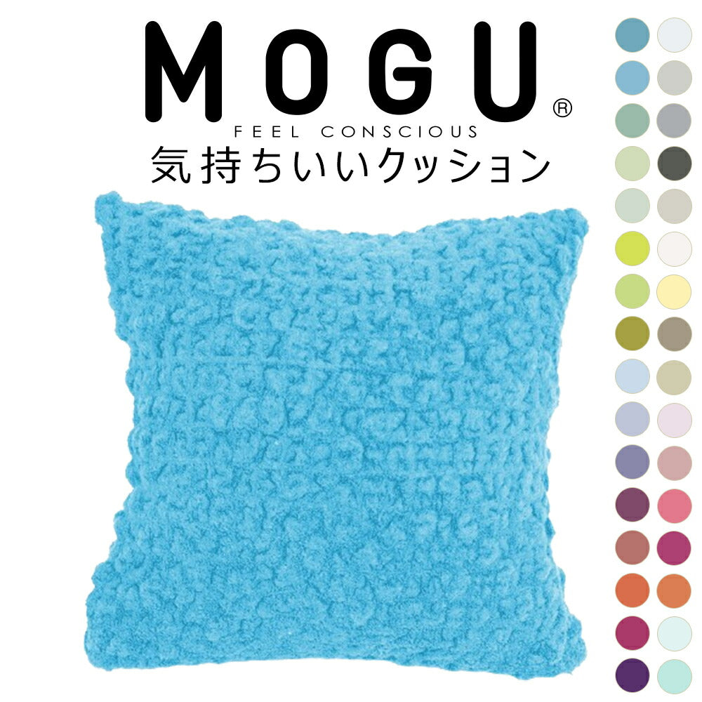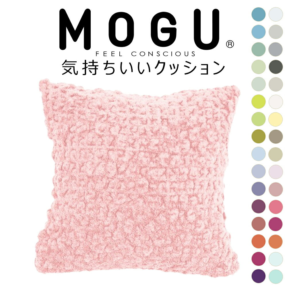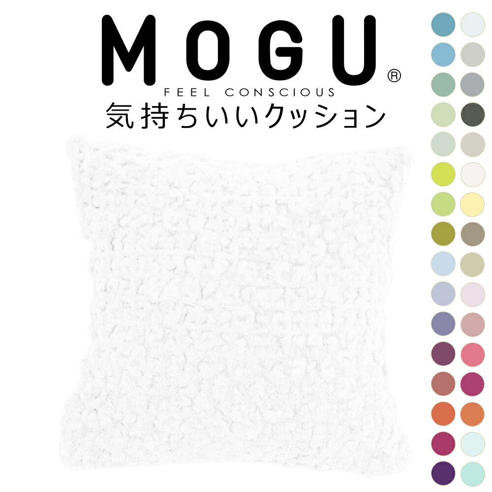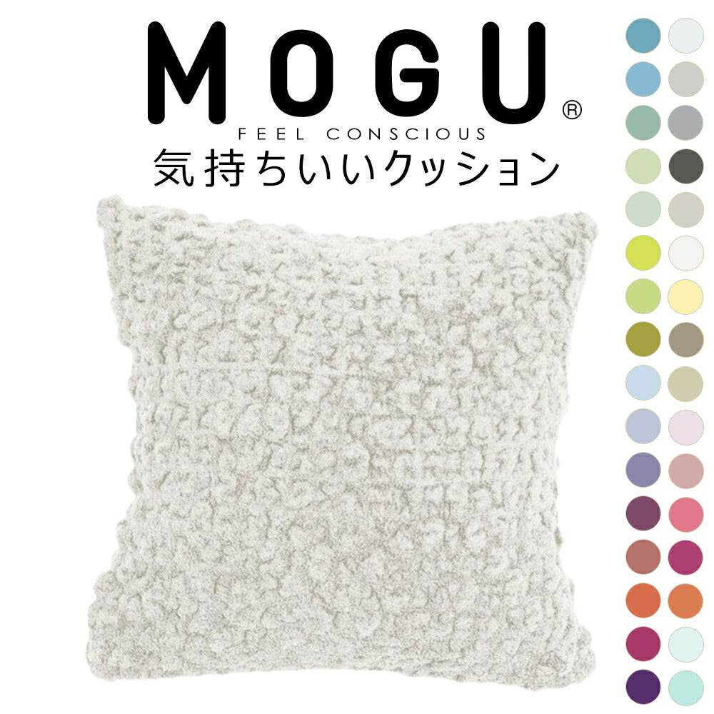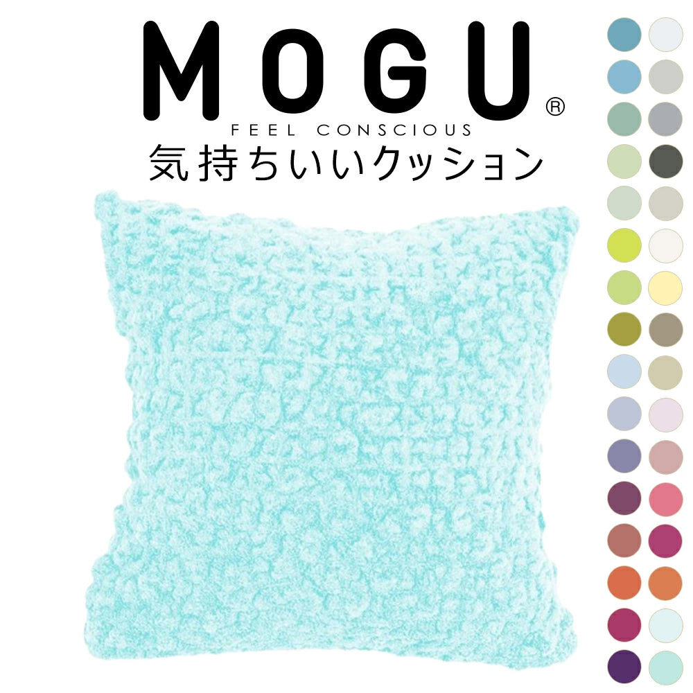 大人気MOGUの「スクエアクッション」と、モコモコ感触で人気の今治タオルブランド「eco moco」を融合させた、新感触クッション「MOGU 気持ちいいクッション」が32色展開で登場!