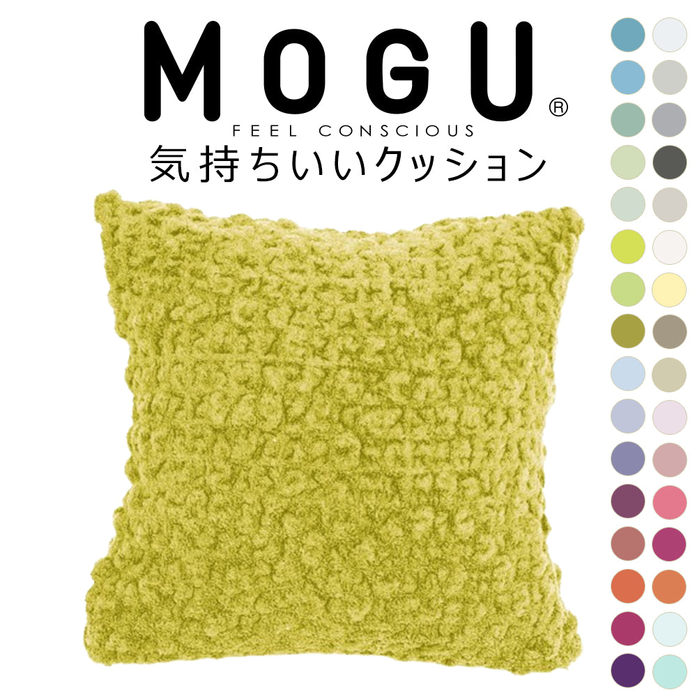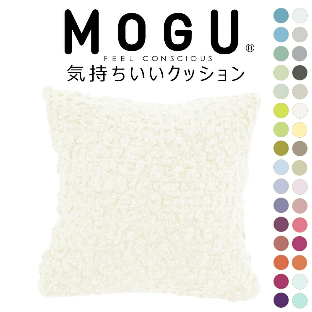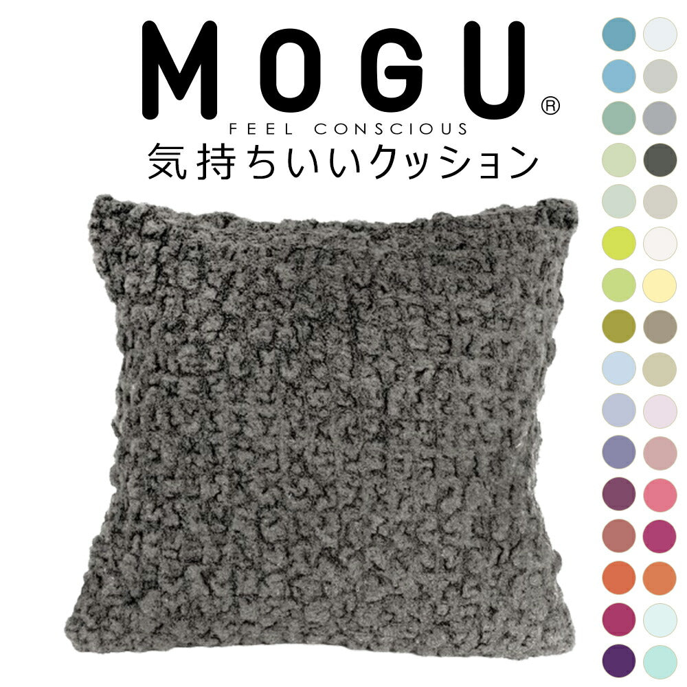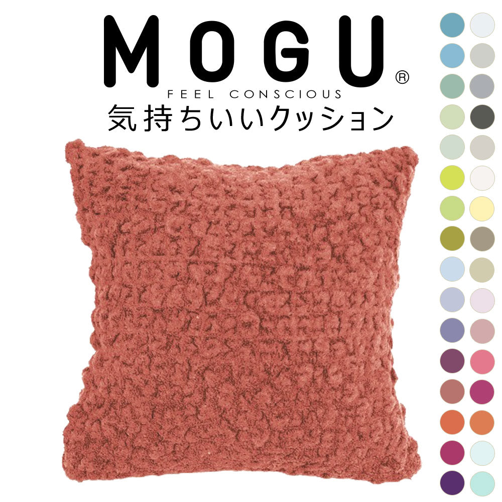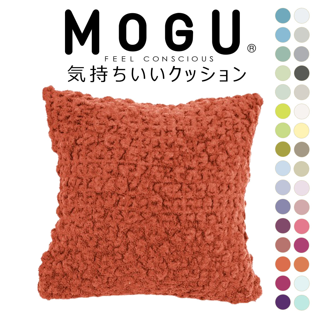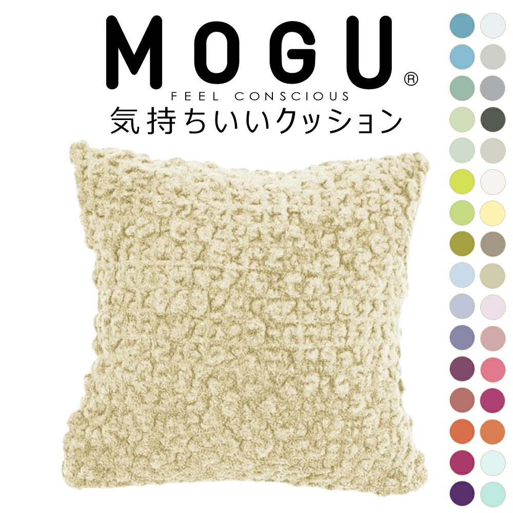 大人気MOGUの「スクエアクッション」と、モコモコ感触で人気の今治タオルブランド「eco moco」を融合させた、新感触クッション「MOGU 気持ちいいクッション」が32色展開で登場!