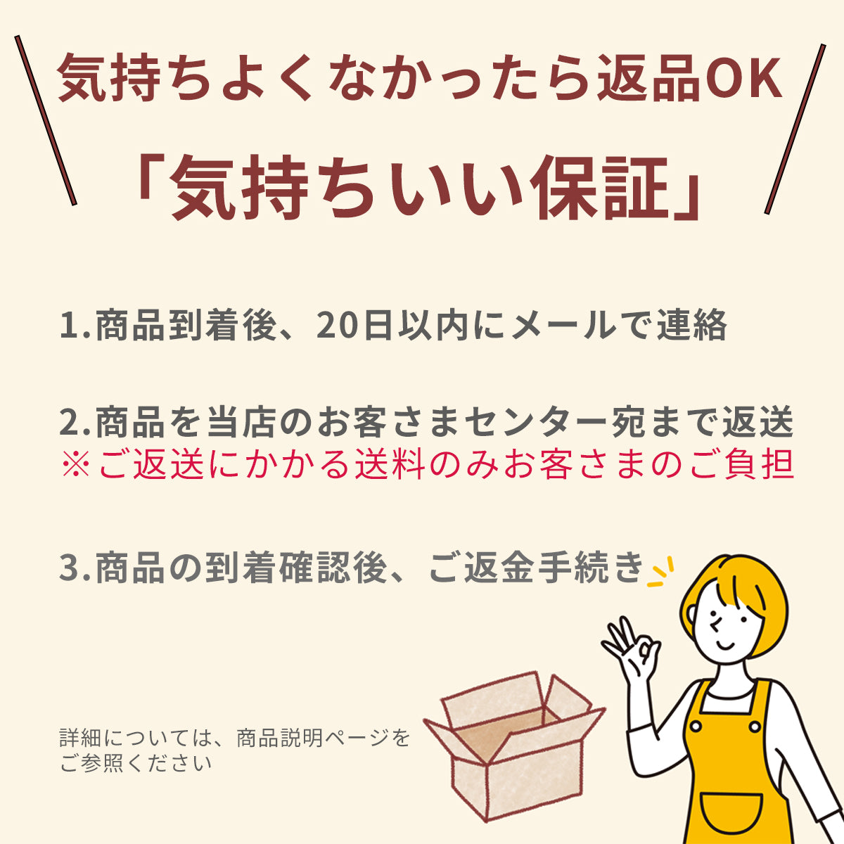 4.商品の到着確認後、ご返金手続きをいたします。