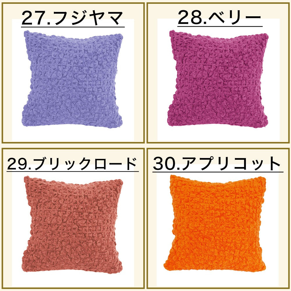 | クッションカバーに使用されているタオル織はパイル糸が出ているのが特徴です。そのため爪、指輪、時計の鎖など身の周りにあるものでたやすく引き抜けやすい状態にありますので、十分にご注意ください。 |