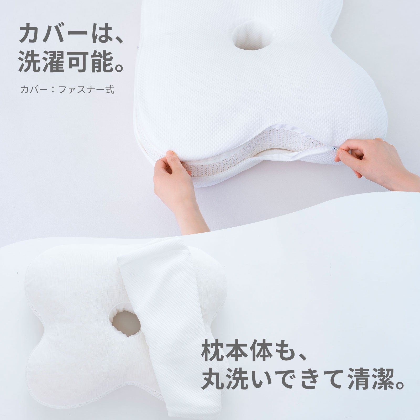 枕本体も水洗いが可能だからいつでも清潔にお使いいただけます。