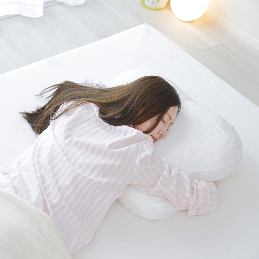寝姿勢が安定するよう、枕を抱えやすい形状に設計。