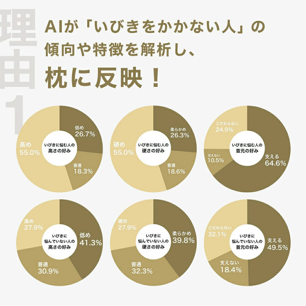 1. 12万件の睡眠データから AIが70万通りの中から最適な形状・高さ・硬さを解析。
