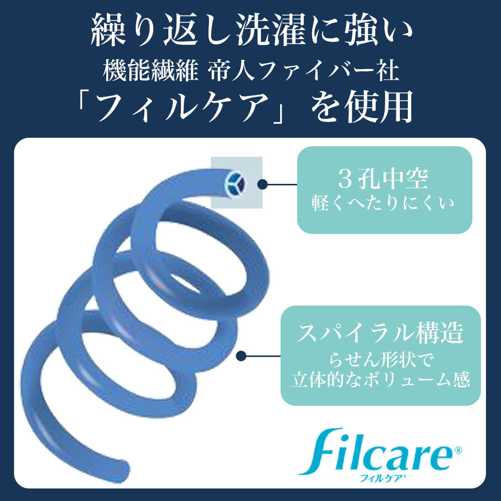 中わたには、繰り返し洗濯に強い機能繊維帝人ファイバー社「フィルケア®」を使用。