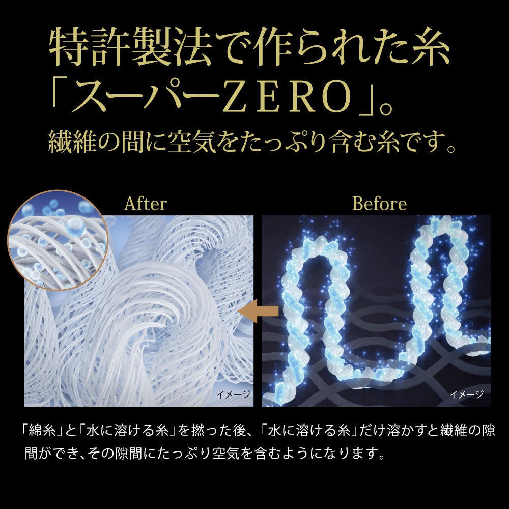 吸水性抜群の特殊な糸『スーパーZERO』を使用した、ふっくらやわらかいタオル