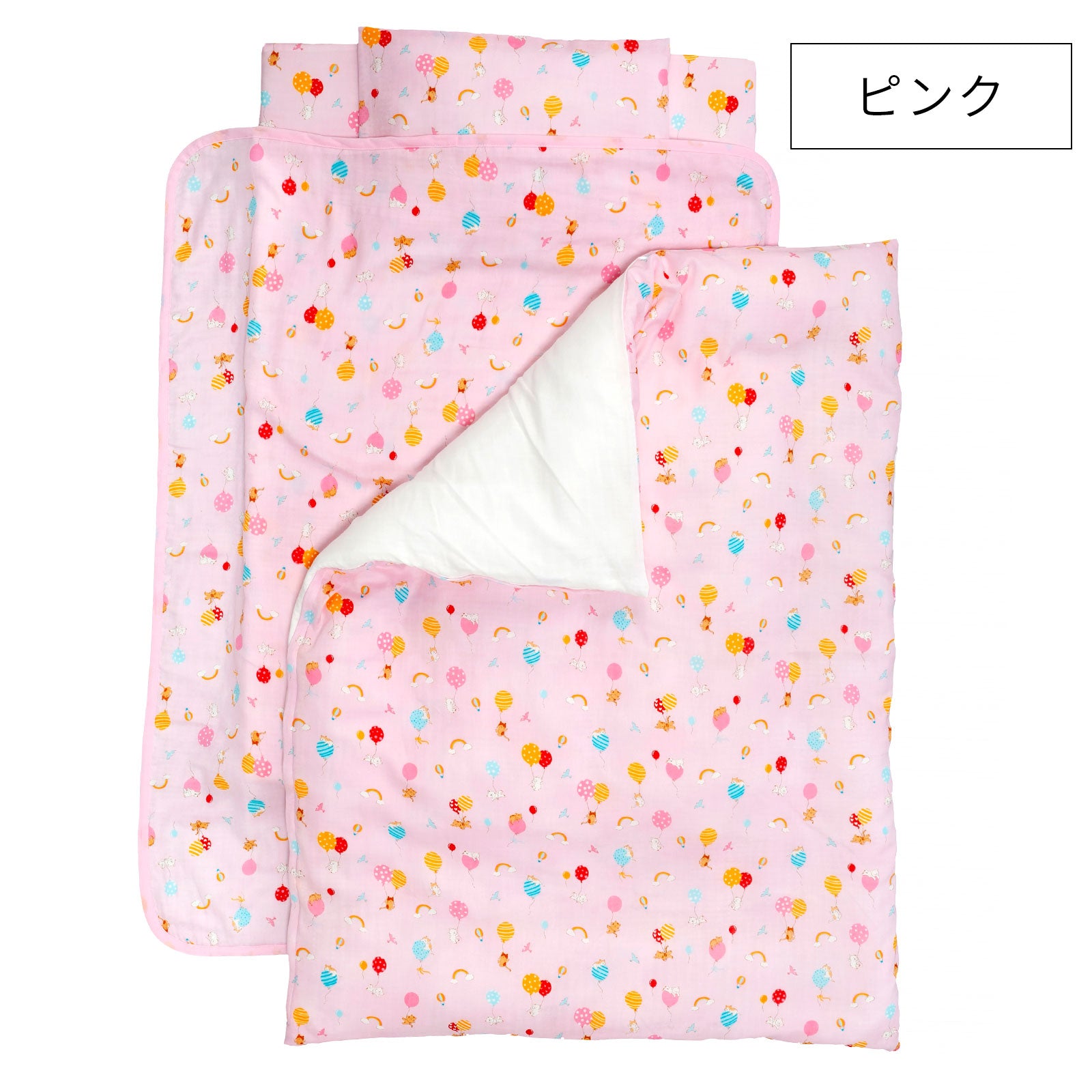 カラフルな柄が可愛いベビー布団7点セット。ご自宅ではもちろん、保育園や幼稚園のお昼寝布団、帰省時や旅行時のお昼寝に大活躍です。敷き布団は、厚さ5cmの固綿を使用しておりますので、床の硬い場所でも安心です。肌に触れるカバーは綿100%のダブルガーゼ生地なので、汗かきなベビーやキッズにピッタリです♪