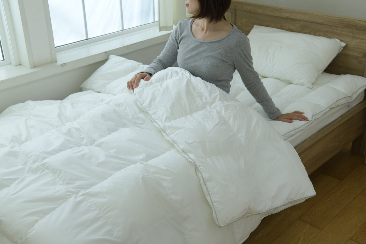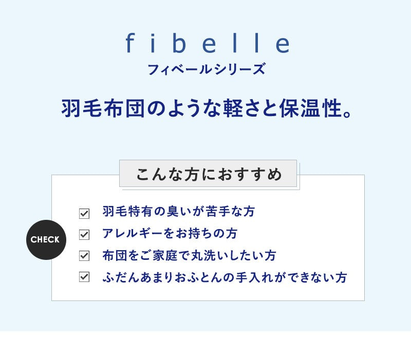 「羽毛布団は使いたいけど、においが気になって・・」「アレルギーがあるので、羽毛布団が使えない」「使っているとボリュームがなくなってきてしまってがっかり」などのお悩みを解決。羽毛のような軽さと保温性を兼ね備え、へたれにくく、いやな臭いもしない。それが、トレビラフィルフィベールです。