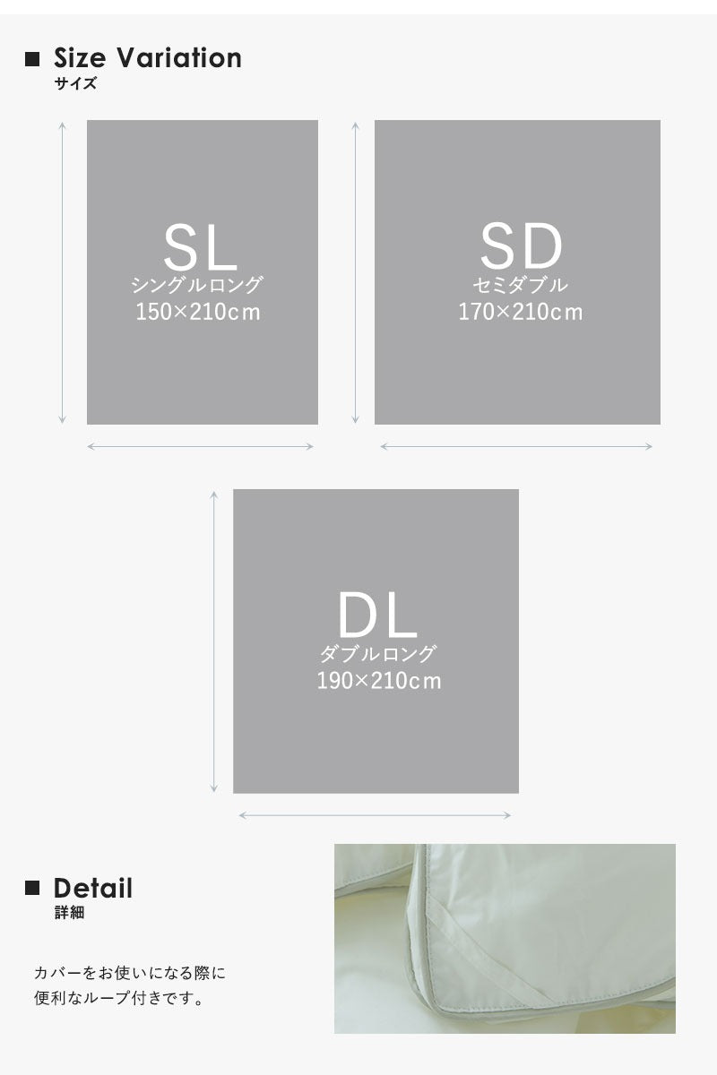 【シングルサイズ】約 150 x 210cm 【セミダブルサイズ】約 170 x 210cm 【ダブルサイズ】約 190 x 210cm |