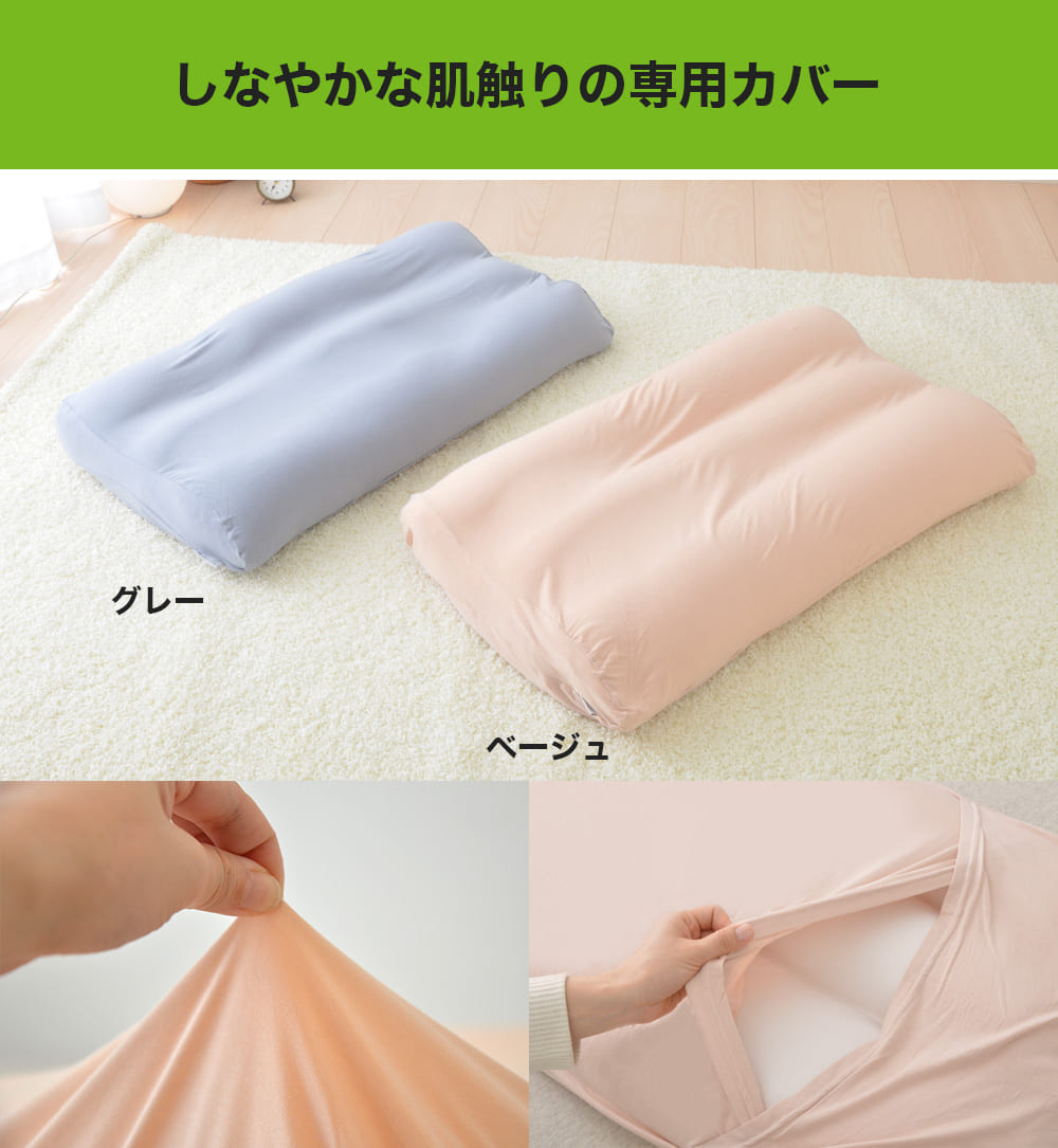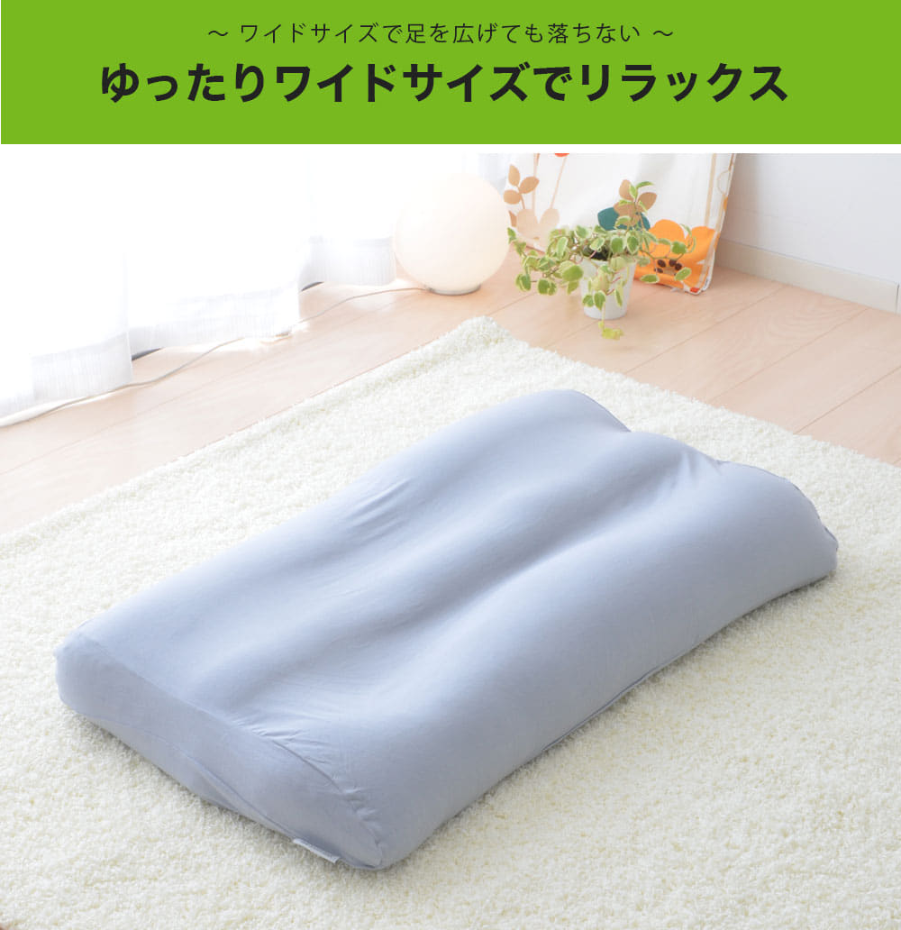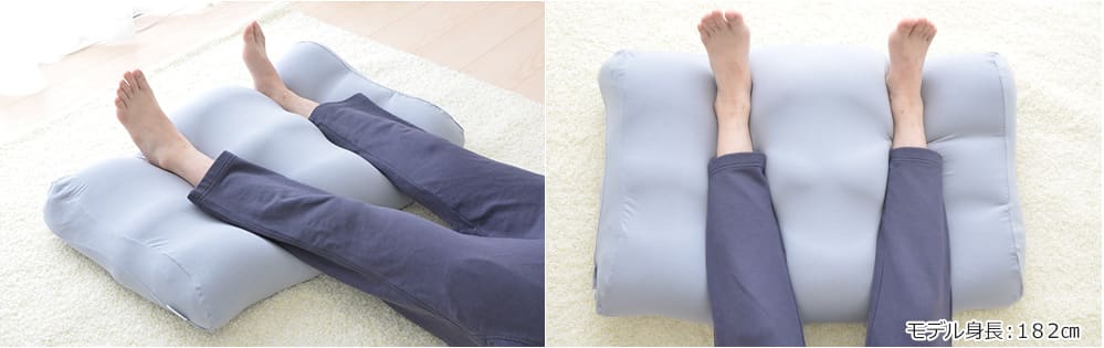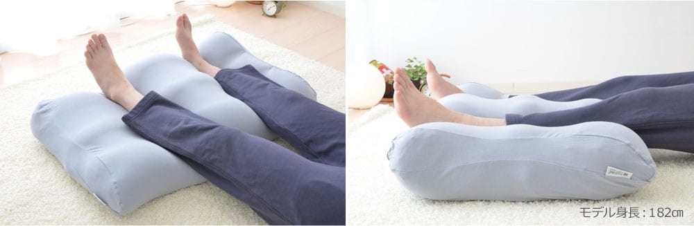 「ふくらはぎ枕」で足の疲れ・むくみ対策足のむくみやだるさは、長時間の立ち仕事やデスクワークなどの筋肉疲労からくる「血液滞留」が原因といわれています。この血流を正常に戻すために、自宅でもできる理にかなった方法が「足上げ」です。 ふくらはぎ枕は「ふくらはぎ」から「かかと」までの広い範囲を支えることで、理想的な足上げ姿勢をサポートし、下半身全体をリラックスした状態に保つために開発された足まくら。 一日中、体重を支えて働いてくれたあなたの足へ、癒やしのご褒美を♪癒やしのふくらはぎ枕は「ふくらはぎ」から「かかと」まで、たっぷりと広い面で包みこんでくれる足まくら。足首だけを支えるタイプと比較すると体圧分散性が高く、適度なスロープ形状によって理想的な足上げ姿勢をサポートしてくれます。 足をのせる部分には、やわらかストレッチ素材を、裏側とサイド部分には、通気性に優れたメッシュ素材を使用しています。通常は低い方をひざの裏に、高い方はかかとにくるようにして使用しますが、お好みで前後の高さを変えてもご利用いただけます。 もちもち♪ふわふわ♪思わず目を閉じて感触を楽しみたくなる、気持ちいい~感触のヒミツは中素材にあり。流動性のある「極小発泡ビーズ」、反発性のある「低反発ウレタン」、ふんわり感の「マイクロファイバー綿」の3つの素材を、独自の配合率でブレンドすることにより、やわらかいながらも安定感のある、絶妙なフィット感を実現しました。 ○極小発泡ビーズ ・・・流動性があり、足の動きにあわせた形の変化をスムーズにします。○低反発ウレタン ・・・ウレタンの反発性が安定感を生み、足をしっかりと支えます。 ○マイクロファイバー綿 ・・・ふんわりとした柔らかさと、通気性をよくしてくれます。 3つの素材を使った独特の柔らかさとフィット感で、ひざ下や足首に負担がないよう、隙間なくサポートします。 足を広げても落ちる心配がないので、ゆったりとリラックスできます。男性でも自然な姿勢でゆったりとお使いいただけます。 レギュラーサイズと比較すると、長さと高さはあまり変わりませんが、幅があります。身長や体格、お好みに合わせてお選びください。 専用カバーには、柔軟な伸縮性と、しなやかな肌触りのレーヨン生地を採用。ほのかな光沢で高級感があり、簡単に取り外しもできるのでお洗濯も楽々です。カラーは「グレー」と「ベージュ」のシックな2色をご用意しました。