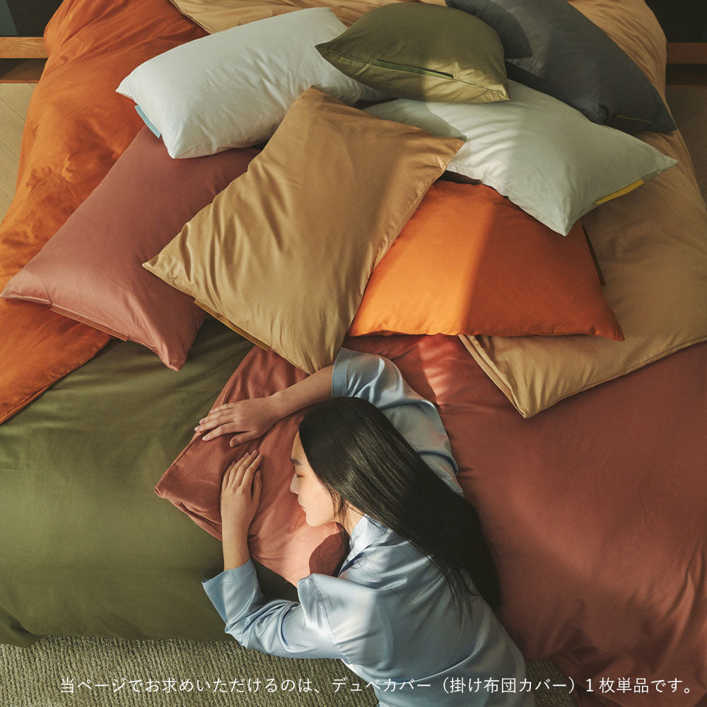 | サロン発のビューティープロダクトを展開するトータルビューティーカンパニー「uka」とコラボレーションしたデュベカバー(掛け布団カバー)です。 椿オイル加工(ウォームベージュ、サニーピンク、フレンドリーオレンジ、リカバリーグリーン) |