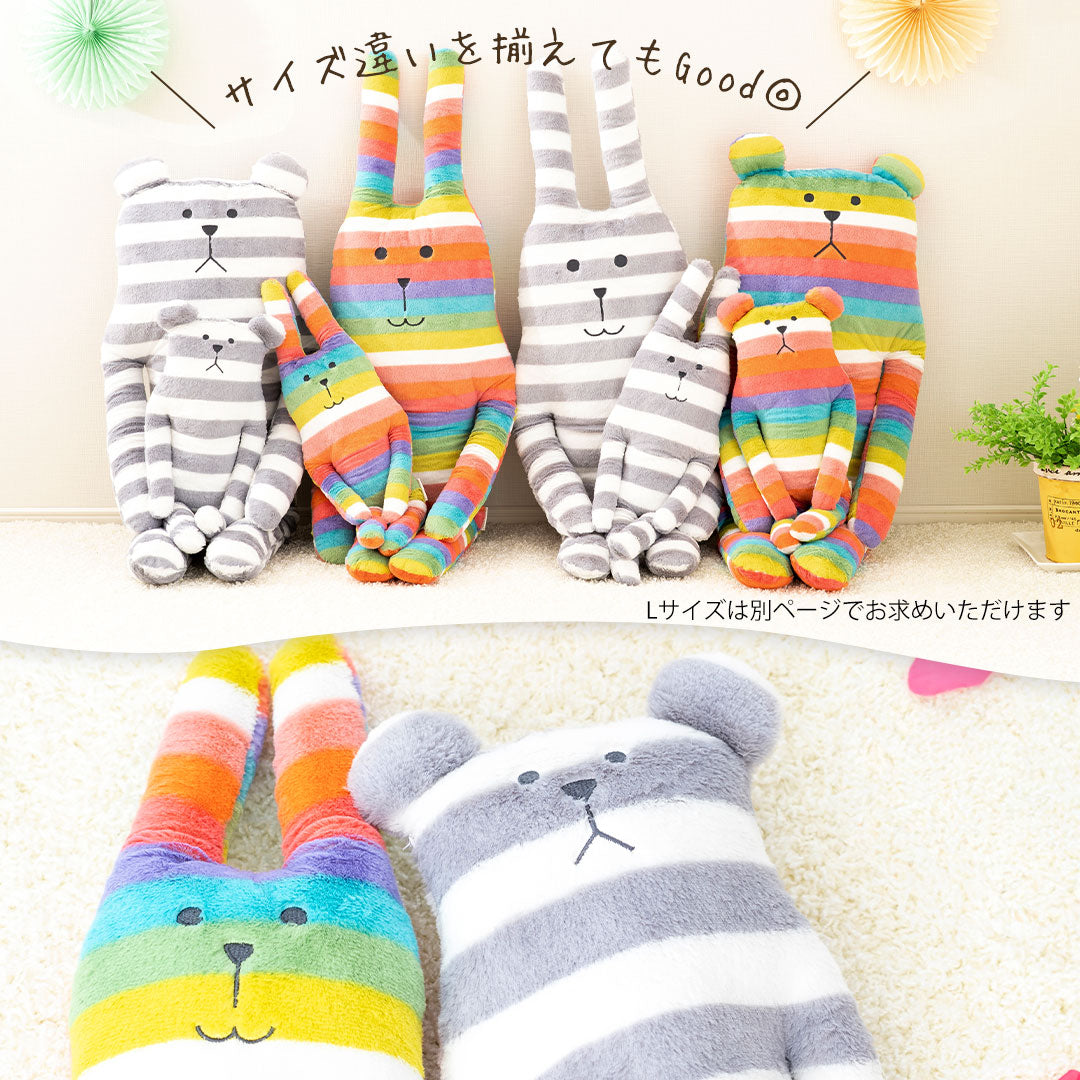 子どもの抱き枕サイズですが、このコンパクトさが大人でもついついはまってしまいます。レインボーラブを愛用していますが、一見「派手かな?」という見た目なのに、わずかな起毛で色がキレイに混じり合って、お部屋にいても意外とうるさくないんです^^