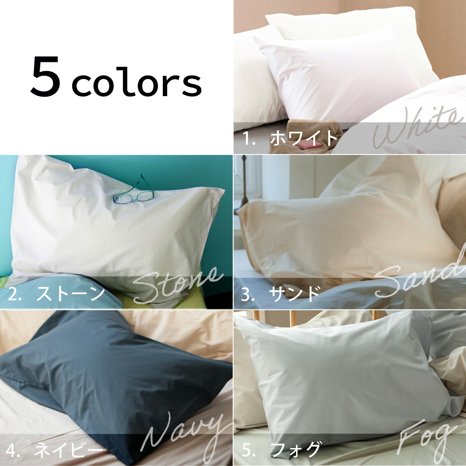 色の組み合わせを楽しむ それぞれに個性をもった色合いは無地同士で合わせたりお好みの掛け布団カバーにアクセントとしてプラスしたり、無地だからこそ、合わせる楽しさがあります。
