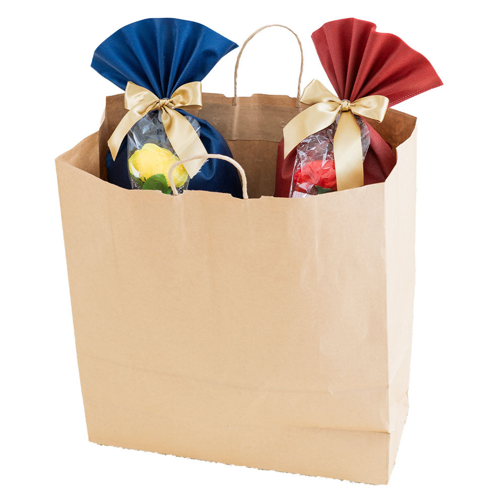 「王様の足枕」が2つまで入る手提げ袋です。母の日と父の日のペアギフトに、直接お渡しするプレゼントに最適です。